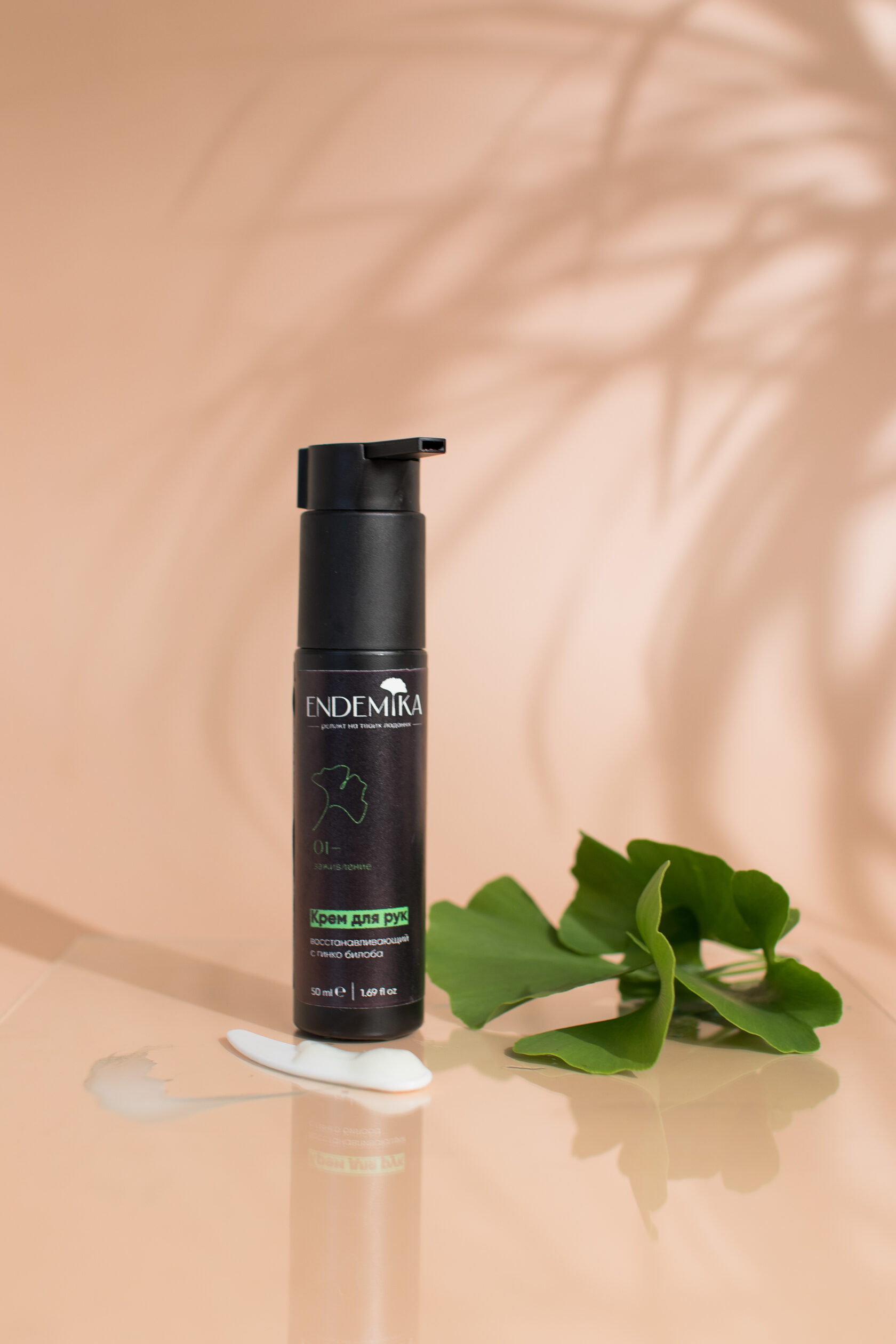 Гидролат Гинкго Билоба, масло сладкого миндаля, масло персика, масло оливы, алоэ вера гель, глицерин, эмульгатор, воск, С02 экстракт березы, Шоромикс 708
